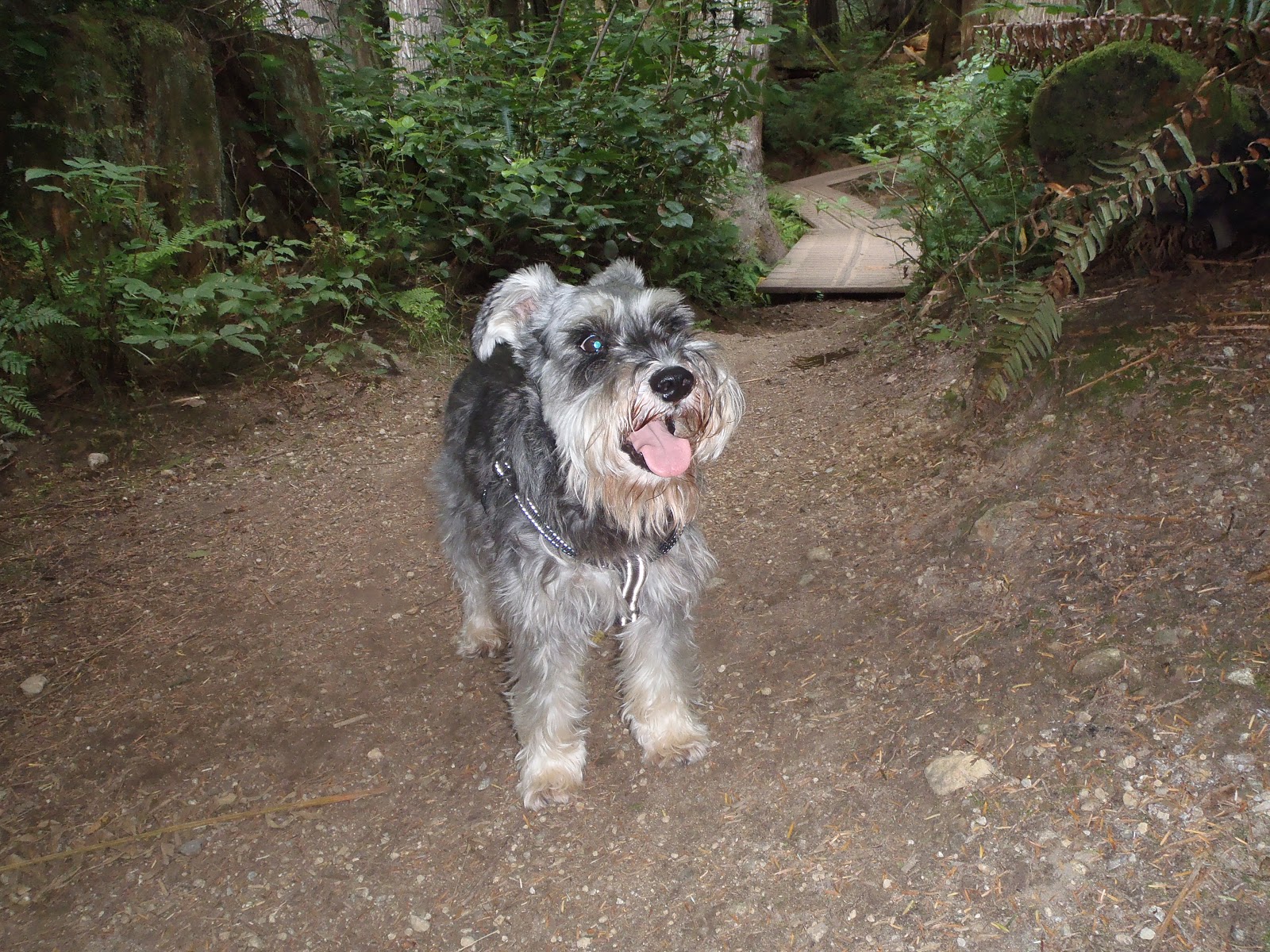 I combed ravines, hiked plenty of trails and walked through a sewage drain desperately searching for Lincoln. I stopped evening walkers. No sign of my twelve-year-old schnauzer. By 10 p.m., it was too dark to continue foraging in the forest. I drove ridiculous distances, repeatedly covering every paved and dirt roadway within a 10-kilometer radius until 1 a.m....just in case. Then, I peppered the neighborhood with Missing Dog signs.